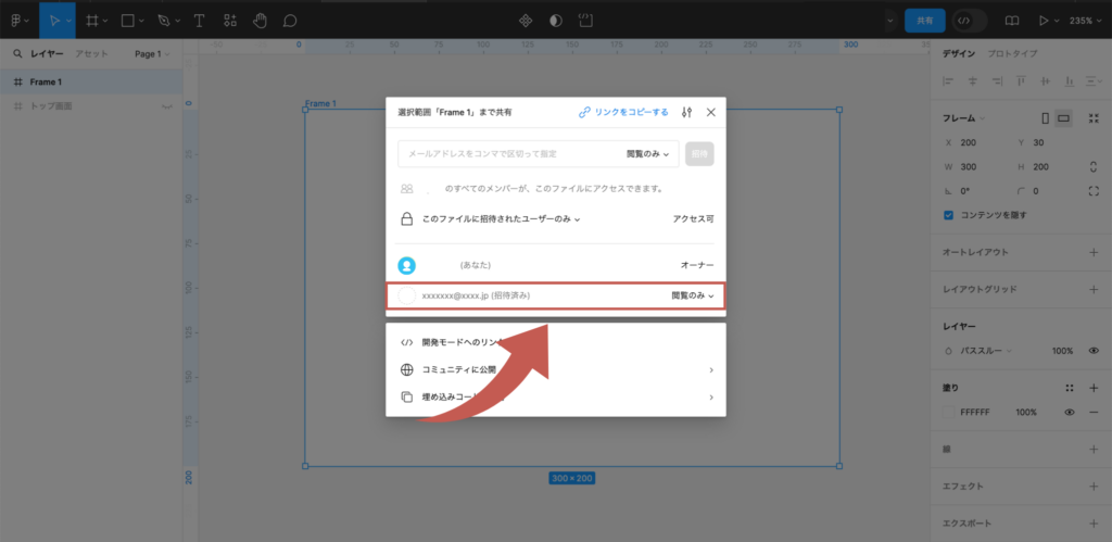 Figmaでは、自分以外の人にデータを共有したい場合、簡単に共有をすることができます。