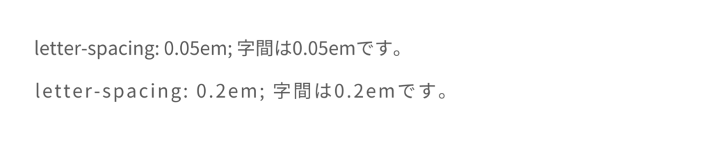 例えば、0.2emと記述すると、文字の高さに対して10分の2の字間となります。