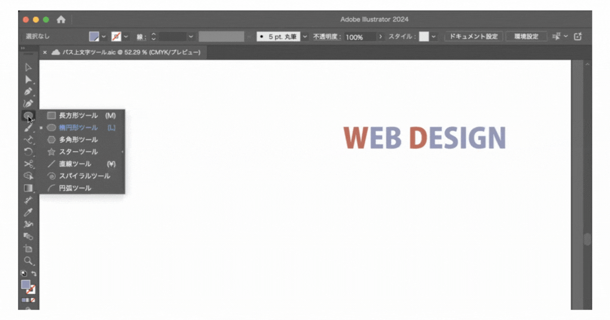 - 左側の文字ツールを長押しして、パス上文字ツールを選択します